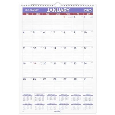 AT A GLANCE 2026 Wall Calendar, 12" x 17", Medium Tall (PM22826)