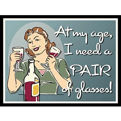 At my age I need a pair of glasses funny RETRO METAL TIN WALL PLAQUE SIGN NOVELTY GIFT Home bar kitchen shed man cave (150MM x 200MM 8" 6")