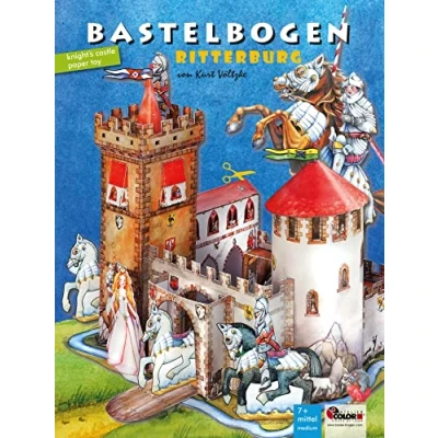Craft kits for Kids: Make a knight's castle model with children from 6 years of age with the support and supervision of adults, with scissors and glue for gluing. Knight toys made of paper for girls and boys of primary school age - Papertoys for kids. Medieval Knight's Castle Craft Set with Castle Courtyard, 2 Horses, 2 Knights and a Princess. Set of knight's handicraft sheets an activity for indoors to promote fine motor skills, eye hand coordination and concentration. Building time approx. 4 h, difficulty level: medium, children from 6 years can cut out the figure outlines and assemble the knight's castle with grandma & grandpa, mum & dad or a carer. Size of knight's castle with figures: 7 sheets for cutting out, crafting and playing, size of castle: 30 x 30 x 24 cm Creative paper toys DIY handmade - playable castle made of sturdy paper., Manufacturer: ATELIER COLOR