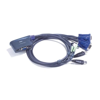 ATEN 2 Port USB VGA KVM Switch with Audio 0.9m CS62US (up to 2048 x 1536; DDC2B) hotkey and mouse, support Windows, Linux, Mac, Sun, black