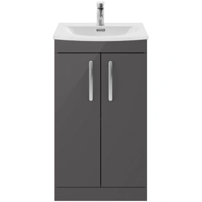 Athena Floor Standing 2 Door Vanity Unit with Basin 4 500mm Wide Gloss Grey Nuie