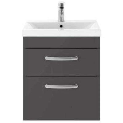 Athena Gloss Grey 500mm Wall Hung 2 Drawer Vanity Unit and Thin Edge Ceramic Basin ATH074D Nuie