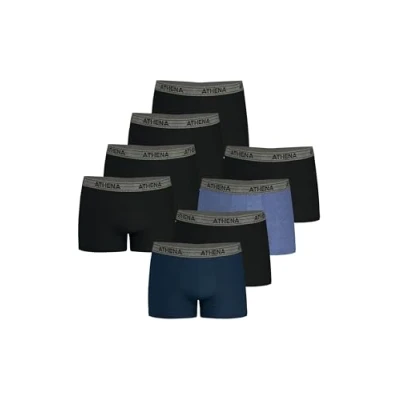 Athena Men's Basic Coton 8a71 Boxer Shorts, Blue/Black/China Blue/Black/Black/Black/Black/Black, L (Pack of 8)
