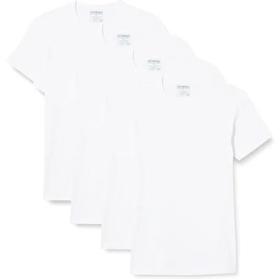 Comfortable style, organic: with their body-hugging cut, these T-shirts made from 100% organic cotton can be easily worn under a sweater or shirt and let you move freely. They are perfect for combining comfort, style and organic with ease FOR SENSITIVE SKIN: Very soft and supple, the cotton fiber is ideal for sensitive skin. In addition, these t-shirts have been made without tags or seams on the sides to minimize friction and irritation. T-shirts made of organic cotton – this set of 4 T-shirts made of organic cotton is a high-quality concentrate. The T-shirts are marked with Oeko-Tex Standard 100, which guarantees that there are no harmful substances. Care instructions: machine wash at maximum 60°C, iron at maximum 150°C, tumble dry Do not bleach, do not dry clean. GOOD IN HER SKIN For over 60 years, Athena has been putting her unique know-how for men and women in hectic everyday life, offering high-quality, comfortable, accessible and dynamic underwear in a simple and universal style.