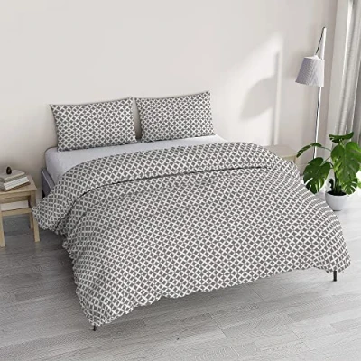 Athena duvet cover set with printed duvet cover and pillowcases Fabric: 100% Cotton Made in Italy. Available in many designs and attention to detail Double size: duvet cover 250 x 200 cm + double flap to secure under the mattress and 2 pillowcases 52 x 82 cm + internal flap For a good care of the product, we recommend machine washing at 30 degrees, do not bleach or dry clean. Iron on medium heat and tumble dry on low heat