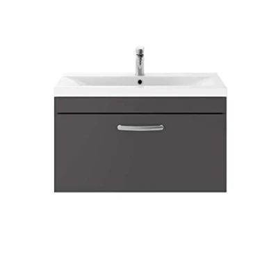 Athena Wall Hung 1 Drawer Vanity Unit with Basin 800mm Wide Gloss Grey Nuie