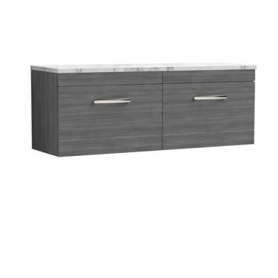 Athena Wall Hung 2 Drawer Vanity Unit with Carrera Marble Worktop 1200mm Wide Anthracite Woodgrain Nuie