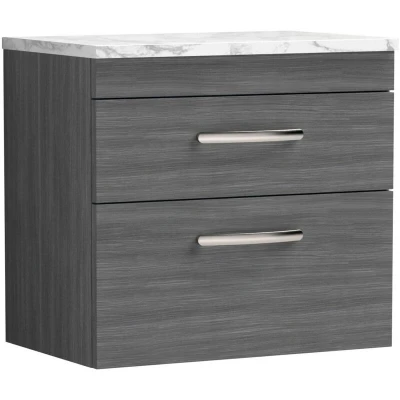 Athena Wall Hung 2 Drawer Vanity Unit with Carrera Marble Worktop 600mm Wide Anthracite Woodgrain Nuie