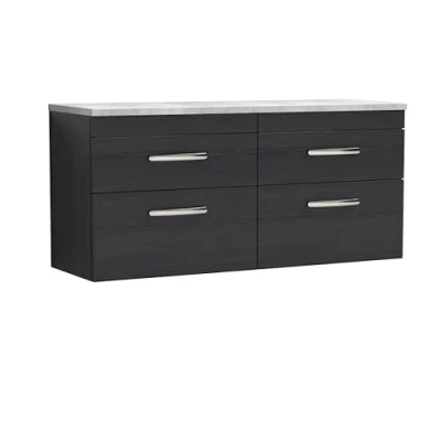 Athena Wall Hung 4 Drawer Vanity Unit with Bellato Grey Worktop 1200mm Wide Charcoal Black Woodgrain Nuie