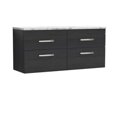 Athena Wall Hung 4 Drawer Vanity Unit with Carrera Marble Worktop 1200mm Wide Charcoal Black Woodgrain Nuie