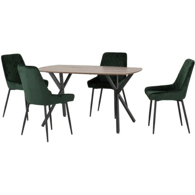 Athens Rectangular Dining Set with Avery Chairs Medium Oak Effect/Black/Emerald Green Velvet