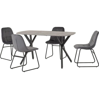 Athens Rectangular Dining Set with Lukas Chairs Concrete Effect/Black/Grey Velvet
