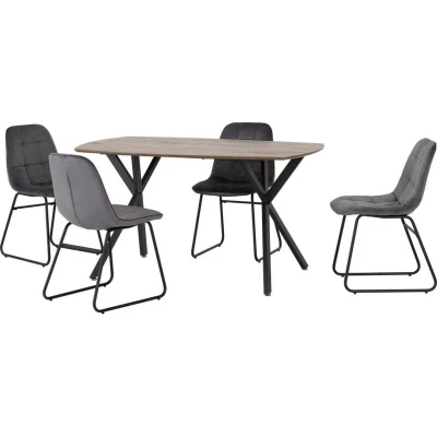 General description The Athens Rectangular Dining Set with Lukas Chairs combines style and functionality, featuring a medium oak effect finish complemented by black and grey velvet accents. Technical specifications Table Dimension: L80 x W140 x H75 cm Chair Dimension: L54 x W43 x H81 cm Total Weight: 36.34 kg Materials: MDF, Metal, 3D Plastic Veneer, Velvet Fabric, Foam, Plywood, Non-woven