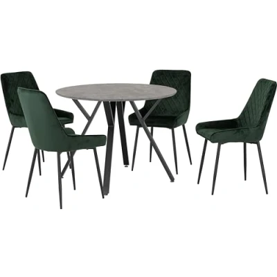 Seconique Athens Round Dining Set with Avery Chairs in Concrete Effect/Black/Emerald Green Velvet Table Diameter 1000mm x D 1000mm x H 765mm Chair W 480mm x D 590mm x H 900mm Table Leg Thickness 25mm X 50mm Seat Pad Size W380 D440mm Backrest Size H450mm Max Chair Weight 100kg Top Thickness 20mm Seat Pad Height 480mm Chair Leg Thickness 25x20mm;This product will be shipped in several packages;They may be delivered at different times