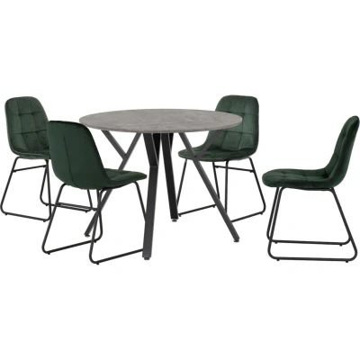Athens Round Dining Set with Lukas Chairs Concrete Effect/Black/Emerald Green Velvet