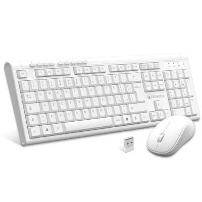 ATLANTIS P013-AX280GW + M Kit TASTIERA WIRELESS + MOUSE OTTICO WIRELESS 3 PULSANTI RICEVITORE USB Nano Size Bianco