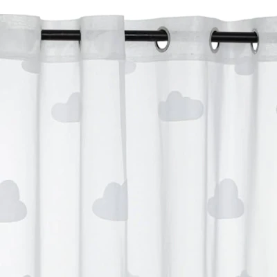 "Nuage" children's curtain white. Dimensions: 140 x 0.1 x 240 cm You will gently dress up the windows of your little one's room. Flexible and lightweight, the curtain will create privacy in a room without blocking light. It has metal eyelets for easy attachment to a rod. Features cloud-shaped drawings.