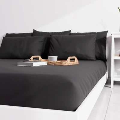 Plain Fitted Sheet 140 x 190 cm Polycotton Black Easy care, no need to iron One Size