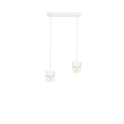Enhance your interior with the Atollo Bar Pendant Ceiling Light in White. This stylish fixture features two E27 bulbs and is dimmable, allowing you to set the perfect mood while adding a modern touch to your space.