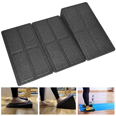 ✅ [Physical Therapy] Squat ramp board is designed for stretching to help recover and prevent plantar fasciitis, shin splints, shin splints, calf strains and other foot and ankle injuries and pain. It increases blood flow and maximizes effectiveness of stretching. ✅ [Premium Material] Made of high-quality environmental protection material, squat wedge blocks are non-toxic, tasteless, waterproof, reusable, lightweight, strong, durable and provide long service life. ✅ [Size & Package] You will get 2pcs 8.5°squat wedge blocks and 1pc 17°squat wedge block. 8.5°Squat wedge block is about 30.5 x 16.5 x 5.08cm/12 x 6.5 x 2 inch, and 17°squat wedge block is about 30.5 x 16.5 x 10.16cm/12 x 6.5 x 4 inch. ✅ [Wide Application] Squat wedge block is great for home, office, outdoor and gym to stretch and strengthen your feet and calves. It is easy to put in your gym bag, so you can take it outside easily. ✅ [Strong Load Capacity Up To 440LB] Sport slant board can hold up to 440LB, so most adults can use it even for obese people and over weight people. Concave and convex particles on the surface increase the friction, preventing from slipping.