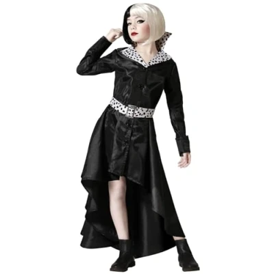 The Cruella de Vil Girl Set is a very eye-catching and eye-catching costume that is sure to make your child stand out at any party or costume event. This evil girl costume is tailored for a 7-9 year old girl with a measurement of 70 to 75 cm chest circumference, 62 to 66 cm waist circumference and 29.5 to 32 inch hip circumference. The costume is perfect if the girl is between 130 and 145 cm The costume of the evil Cruella de Vil for girls consists of the following elements: a black dress with skirt which consists of a pattern on the collar of black polka dots with white background, and a belt with this same Dalmatian pattern. To complete the look, you can combine the dress with long black opera gloves, a black and white wig that mimics the characteristic haircut of Cruella de Vil and makeup imitating the arched eyebrows or red lips of the wicked., Manufacturer: Atosa