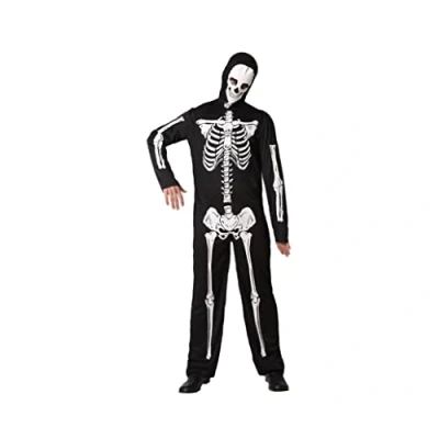 With this Halloween costume man you will be prepared to scare everyone the day of the dead in the most fun way. Thanks to its original design with the bones printed on fabric you will show off as a costume with the most consistent Halloween aesthetic. This skeleton costume man Halloween is in size XS with measurements of 90 to 100 cm chest circumference, 80 to 95 cm waist circumference and 90 to 105 cm hip circumference. This skeleton costume consists of a black suit with an original skeleton printed in life size and a mask with the skull print. If you want to be the most original skeleton of your party, this skeleton man costume is the best choice for you. This original skeleton costume for men is delivered in a handy pouch so you can take it wherever you need without fear of spoiling it. Also comes with a hanger for easy storage This costume can also be used as a man skeleton carnival costume for a fancy dress party. Its tailoring and design make it perfectly suitable for any fancy dress party., Manufacturer: ATOSA