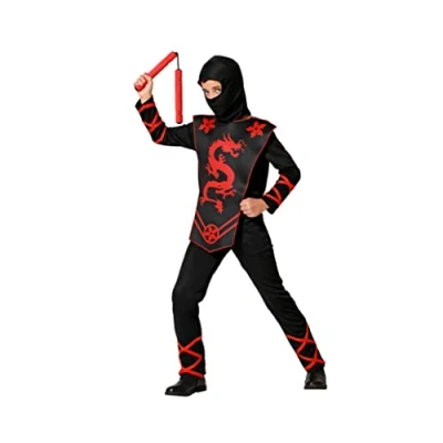 This is a perfect cheap ninja costume for children. It is a costume that is very excited to bring the youngest to their pageants and feel real martial arts experts. The ninja costume for children is for 7-9 years old child with the dimensions of 70 to 75 cm chest circumference, 62 to 66 cm waist circumference and 75 to 81 cm hip circumference. The costume is recommended for a child between 130 and 145 cm. Your new Samurai costume consists of 3 parts: 1 hat, 1 vest and 1 jumpsuit. The jumpsuit covers the whole body with its long sleeves on both arms and legs with an oriental decoration in red, the vest covers the entire upper body to the legs and is decorated with oriental prints and an eye-catching dragon. Finally, the balaclava is black and covers the entire head, except the eyes. This ninja suit comes in a handy plastic bag so it can be stored in your closet without damaging it. It is also hung on a hanger so it does not wrinkle when not in use. The ninja costume is always a great idea and a very present theme. Also suitable for Halloween, it will always be right to choose the party modelled on a ninja warrior., Manufacturer: ATOSA