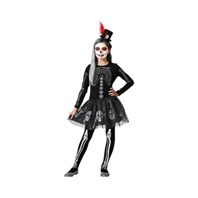 With this shiny skeleton costume for girls your child will be able to scare everyone at pleasure. Thanks to its original design with the bones printed on fabric, bright decorations on skirt and skull prints you will have the best Halloween costume. This glowing skeleton costume is designed for a 5-6 year old girl with measurements of 64 to 70 cm chest circumference, 58 to 62 cm waist circumference and 68 to 75 cm hip circumference. It is perfect if the girl is between 115 and 130 cm With this glow human skeleton costume, your little girl will be equipped to scare her friends by being the most fearsome of all skeletons on Day of the Dead!, Manufacturer: Atosa