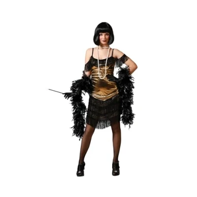 Glamorous Cabaret Style: Costume inspired by classic cabaret shows, perfect to stand out with glamour, seduction and theatricality at themed parties or carnival events. IDEAL FOR SIZE XS-S: Designed for women with measurements of 85-95cm chest, 70-80cm waist and 90-100cm hips, ensuring comfort and perfect fit. Bodycon Short Dress: Bodycon design with fringes and bright black and gold tones, highlighting the female figure and bringing a touch of whimsy. Accessories to personalize: Pair with fishnet stockings, high heels, feather hat or headband, long pearl necklace and other accessories for a stunning look. VERSATILE AND EYE-CATCHING: Ideal for carnival, costume parties, themed shows and events where you want to shine with a unique and bold style., Manufacturer: Atosa