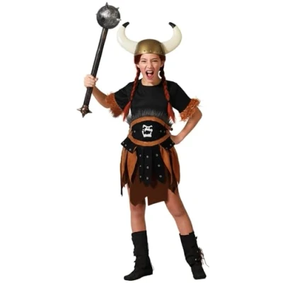 POWERFUL AND AUTHENTIC DESIGN: The Viking costume evokes the look of the Norse warrior women who inhabited Scandinavia during the Viking era. This costume combines elements of old dress with modern details to create a powerful and bold look for your little girl. PERFECT SIZE FOR GIRLS - The Viking costume is tailored for a 5-6 year old girl with measurements of 64 to 70 cm chest circumference, 58 to 62 cm waist circumference and 68 to 75 cm hip circumference. It is ideal for a girl who is between 115 and 130 cm in height. INCLUDES DRESS AND BELT: The set consists of a short dress in brown rustic fabric and a belt decorated with leather accents. EYE-CATCHING DETAILS - Dress includes faux fur finishes on the shoulders, adding a realistic touch to the design. Versatile and comfortable: Perfect for carnival, costume parties or themed games, with comfortable materials that allow you to move freely., Manufacturer: Atosa
