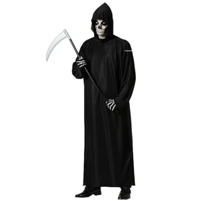 This is a kids black scary ghost costume perfect for Halloween night. The material is opaque black and is made from a lightweight, buoyant fabric to create a sinister and mysterious look. The black ghost costume is tailored for a child aged 3-4 years with measurements of 60 to 64 cm chest circumference, 55 to 58 cm waist circumference and 62 to 68 cm hip circumference. The costume is perfect for a child who is between 98 and 115 cm in height The scary ghost costume for kids consists of a long, loose tunic with hood and wide sleeves. The hood exposes the face so that the child can see and breathe comfortably while wearing the costume. To complement the costume, a mask or white makeup can be added to the child's face and hands to make it even more ghostly. You could also consider adding some accessory such as a string or a flickering flashlight to create an even more terrifying effect., Manufacturer: Atosa