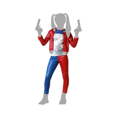 This unisex blue harlequin costume is a costume set that mimics a playful and mysterious harlequin. Great colorful, with black and white details on the jacket and with the option to add a mask or makeup to complete the look. The blue harlequin costume is tailored for a 7-9 year old girl or boy with measurements of 70 to 75 cm chest circumference, 62 to 66 cm waist circumference and 29 to 32 inch hip circumference. The costume is perfect for a child who is between 130 and 145 cm tall The costume consists of a red jacket and red and blue trousers designed to resemble a harlequin's clothing. On the other hand, it contains a white and blue stained t-shirt to give a more sinister and appropriate look for Halloween Day. It may be a good idea to add some extra accessories to complete the costume, such as white gloves, a loot bag to collect sweets, or guns to give a more reckless image., Manufacturer: Atosa