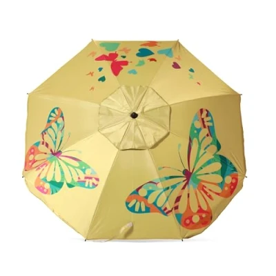 Atosa Beach Umbrella Ø 180cm Reclining Aluminium Model with UPF 50+ Yellow, lemon tree, 180 cm