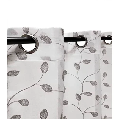 Embroidered Net Curtain with Lurex with Eyelets 140 x 240 cm, Polyester, Grey Eyelet inner diameter = 4 cm