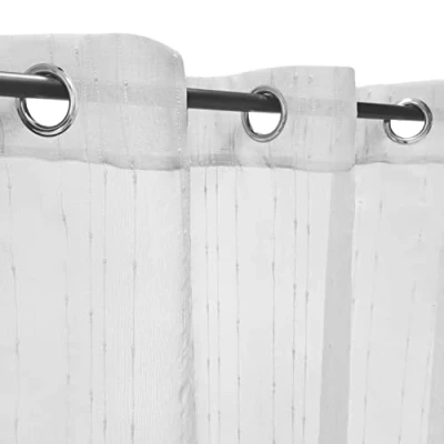 Dimensions: fine stripe embossed curtain with eyelets, size 140 x 240 cm. Includes one panel only. Colour: Atout Ciel offers this curtain in 3 colours so you can choose the one that best suits your decor. In particular, this product is in white with semi-transparent coverage. Design: bedroom, living room, kitchen, dining room, office, thanks to its embossing and colour, this curtain is perfect for any room in your house. This curtain lets the light perfectly into your room while decorating your windows. It is characterised by its fine relief stripes, which give the product and your future decor a modern and modern effect. The 3 simple colours allow this curtain to fit perfectly into any room. INSTALLATION & MAINTENANCE At 2.40m in height, this curtain is perfect for your French doors, bay windows and other windows facing out. Thanks to the eyelets, installation is quick and easy. Round grommets with a diameter of 4 cm, fits most curtain rods. Cleaning is also very easy. Made of polyester, this curtain is machine washable.