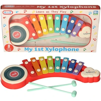AtoZ My 1st Xylophone, 8 Metal Notes with Drum Pad, Educational Musical Toy, 18+ Months