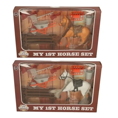 Atoz My First Horse Set with Toy Horse, Wheelbarrow and Stable Accessories, Play for Children 3+ Years, Brown