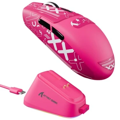 【Upgraded RGB Magnetic Charging Dock】Features Magnetic Lock Tech for instant charging action. Just drop your G3PRO mouse onto the dock – it snaps in, juices up, and stays battle-ready. The dock also includes a touch-sensitive switch—lightly tap to toggle between different lighting effects. 【PixArt PAW3311 Sensor】Equipped with the flagship PixArt 3311 sensor sensor, capable of 800-25,000 programmable DPI, 400 IPS tracking speed, 40G acceleration,and 1000hz/1ms polling rate.Whether for daily work or professional gaming, the G3PRO effortlessly meets all your needs. Motion Sync Technology enhances aim and control. 【62g Ultra-lightweight Design】The G3PRO mouse structure is deeply optimized and adjusted to provide a better button pre-load system. At 62±3 grams, with hyper-minimal design, dominate FPS games with the lightest. Ful-shell wireless gaming mouse without unsightly holes or build-quality compromises for weight reduction. 【Broadcom BK52820 Triple Mode】The Wireless gaming mouse features the high performance Broadcom BK52820 MCU. Tri-mode Connectivity (2.4Ghz Wireless/USB-C Wired/Bluetooth). Lag-free 2.4Ghz mode for blazing fast performance, Bluetooth for seamless pairing with most devices. Play in wired mode with the ultra-flexible cable while charging. Easily switch between them with a button on the bottom of the mouse. 【100M Clicks High-end Microswitches】Features ultra-crispy clicks and Over 100 million cycles by using the top-end switches. It responds 2 times faster than Traditional Mechanical Switch. It is also equipped with a F-Switch scroll wheel encoder which gives precise stepping. All of this ensures you get excellent tactility in your favorite games. 【Dual Driver】The Programmable G3PRO mouse has dual drivers: Web Driver (http://szslxd-tech.com/#/) and ATTACK SHARK self-developed driver (DRIVER DOWNLOAD: https://attackshark.com/pages/dirver-download). Configure your mouse in driver to program buttons, DPI settings, polling rate, marco, LOD and other advanced functions. You can seamlessly manage multiple devices and easily adjust mouse settings. 【500mAh Battery & Dual-Layer PTFE Feet】Its 500mAh battery offers up to 200 hours of playtime on a single charge—perfect for marathon gaming or a full week of work and play without interruption. Equipped with premium dual-layer PTFE feet, it delivers ultra-smooth, stable glide for precision in every FPS, MOBA, MMO, RPG, and Battle Royale match.