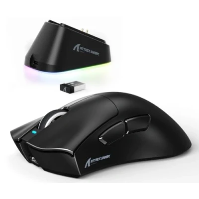 【PixArt PAW3311 Gaming Sensor】The V3PRO gaming mouse is equipped with PixArt PAW3311 flagship sensor with a DPI up to 25,000 and 6 levels of adjustment, 400 IPS tracking speed, 40G acceleration, and 1000hz/1ms polling rate. Whether you use it for daily work or professional gaming, V3PRO can easily meet your needs. 【Upgraded RGB Magnetic Charging Dock】Features Magnetic Lock Tech for instant charging action. Just drop your G3PRO mouse onto the dock – it snaps in, juices up, and stays battle-ready. The dock also includes a touch-sensitive switch—lightly tap to toggle between different lighting effects. 【65g Ultra-lightweight Design】The V3PRO mouse structure is deeply optimized and adjusted to provide a better button pre-load system. At 65 grams, with hyper-minimal design, dominate FPS games with the lightest. Ful-shell wireless gaming mouse without unsightly holes or build-quality compromises for weight reduction. 【Broadcom BK52820 Chip & Smartspeed Wireless Technology】The new BK52820 chip is used to provide stable connection and lower power consumption. Tri-mode Connectivity (2.4Ghz Wireless/USB-C Wired/Bluetooth). Lag-free 2.4Ghz mode for blazing fast performance, Bluetooth for seamless pairing with most devices. Play in wired mode with the ultra-flexible cable while charging. Achieve 1000Hz polling rate in wireless mode, promises a response time of 1ms. 【100M Clicks High-end Microswitches】Features ultra-crispy clicks and Over 100 million cycles by using the top-end switches. It responds 2 times faster than Traditional Mechanical Switch. It is also equipped with a F-Switch scroll wheel encoder which gives precise stepping. All of this ensures you get excellent tactility in your favorite games. 【500mAh Battery & Ergonomic Design】Its 500mAh battery offers up to 200 hours of standby time — perfect for marathon gaming or a full week of work and play without interruption. The V3PRO's dimensions (128*70*43mm) are very similar to the V2PRO. making it suitable for users with medium to large hands. It takes into account different holding postures, such as plank grip, finger grip, and claw grip, to provide the most comfortable grip. 【Dual Driver】The V3PRO mouse has dual drivers: Web Driver (http://szslxd-tech.com/#/) and ATTACK SHARK self-developed driver (DRIVER DOWNLOAD: https://attackshark.com/pages/dirver-download). Configure your mouse in driver to program buttons, DPI settings, polling rate, marco and other advanced functions. You can seamlessly manage multiple devices and easily adjust mouse settings.