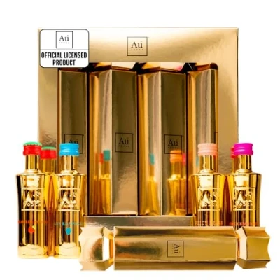 Premium AU Vodka Gift Set: Discover the ultimate au vodka cracker gift set featuring some of our iconic flavoured vodkas 35.2% ABV 5cl, designed to elevate your sipping experience with every pour for a premium celebration-worthy moment Handcrafted in the UK: Crafted from fine British grain and five-times distilled with spring water, this flavoured vodka boasts unrivalled purity and taste; an ultra-premium addition to any vodka gift set for Birthday, Christmas, Fathers Day or home bar Iconic Au Flavours: This sleek vodka gift set includes 4 crackers with our iconic flavours, blue raspberry, juicy peach, pink lemonade, and strawberry burst - perfect for sampling, gifting, or adding a premium touch to party flavors Gold Elegance: A stylish and unique alcohol gift set for any occasion; vodka gifts for women or birthday gifts for men, this curated box adds gold elegance; gold symbolising power and perfection represents the exceptional taste of Au flavoured vodka Combining British Heritage & Luxury Ingredients: A truly exceptional ultra-premium vodka, inspired by gold. Explore the bold flavours and visual appeal of our 5cl mini vodka bottles; ideal alcohol miniatures for connoisseurs Alcohol Crackers Includes: x 1 Au Vodka Blue Raspberry 35.2% ABV 5cl, x 1 Au Vodka Strawberry Burst 35.2% ABV 5cl, x 1 Au Vodka Pink Lemonade 35.2% ABV 5cl, x 1 Au Vodka Juicy Peach 35.2% ABV 5cl - Unique alcohol gift sets for him and her