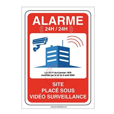 AUA SIGNALETIQUE Autocollant site sous Alarme vidéo Surveillance 24H /24 450x630 mm, Vinyl adhésif