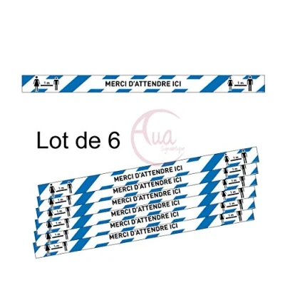 AUA SIGNALETIQUE Lot de 6 Bandes Marquage au Sol Merci d'attendre Ici Bleu Autocollant laminé 1300x100 mm
