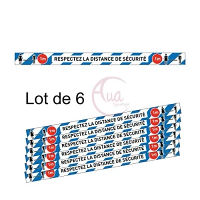 AUA SIGNALETIQUE Lot de 6 Bandes Marquage au Sol Respectez la Distance sécurité Bleu Autocollant laminé 1300x100 mm
