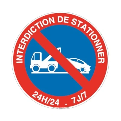 AUA SIGNALETIQUE Panneau Interdiction de Stationner 24H/24 Et 7J/7 Ø 230 Mm, aluminium dibond 3mm