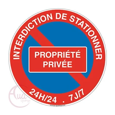 Aua Signaletique Panneau Interdiction de Stationner Propriété Privée 24H 24 7J sur 7 Ø 450 Mm, Aluminium Dibond 3 mm