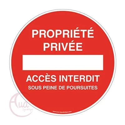 AUA SIGNALETIQUE Panneau Propriété Privée Accès Interdit sous Peine de Poursuites Ø 330 mm, Vinyl Adhésif