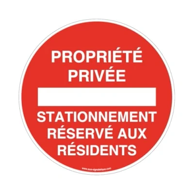 AUA SIGNALETIQUE Panneau Propriété Privée, Stationnement Réservé aux Résidents Ø 230 mm, Vinyl Adhésif