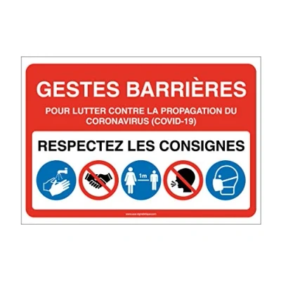AUA SIGNALETIQUE Panneau Signalisation : Gestes Barrières et Consignes à Respecter pour l'Accès l'Etablissement Rouge 1200x840 mm, Vinyl Adhésif