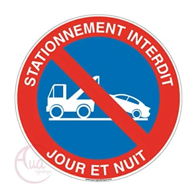 AUA SIGNALETIQUE Panneau Stationnement Interdit Jour et Nuit sous Peine de Fourrière Ø 450 mm, Aluminium Dibond 3mm