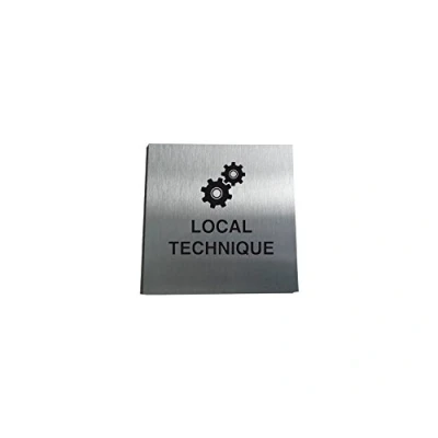 AUA SIGNALETIQUE Plaque Alu Brossé Local Techniques 02 130x130 mm
